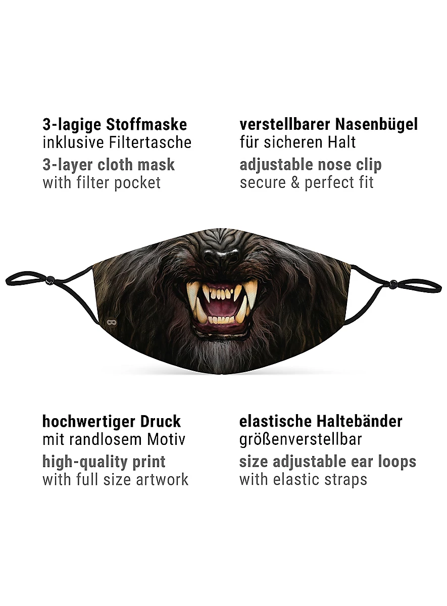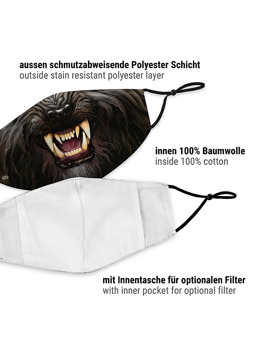 - Trois couches : extérieur polyester, intérieur coton avec poche filtre