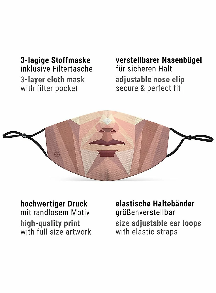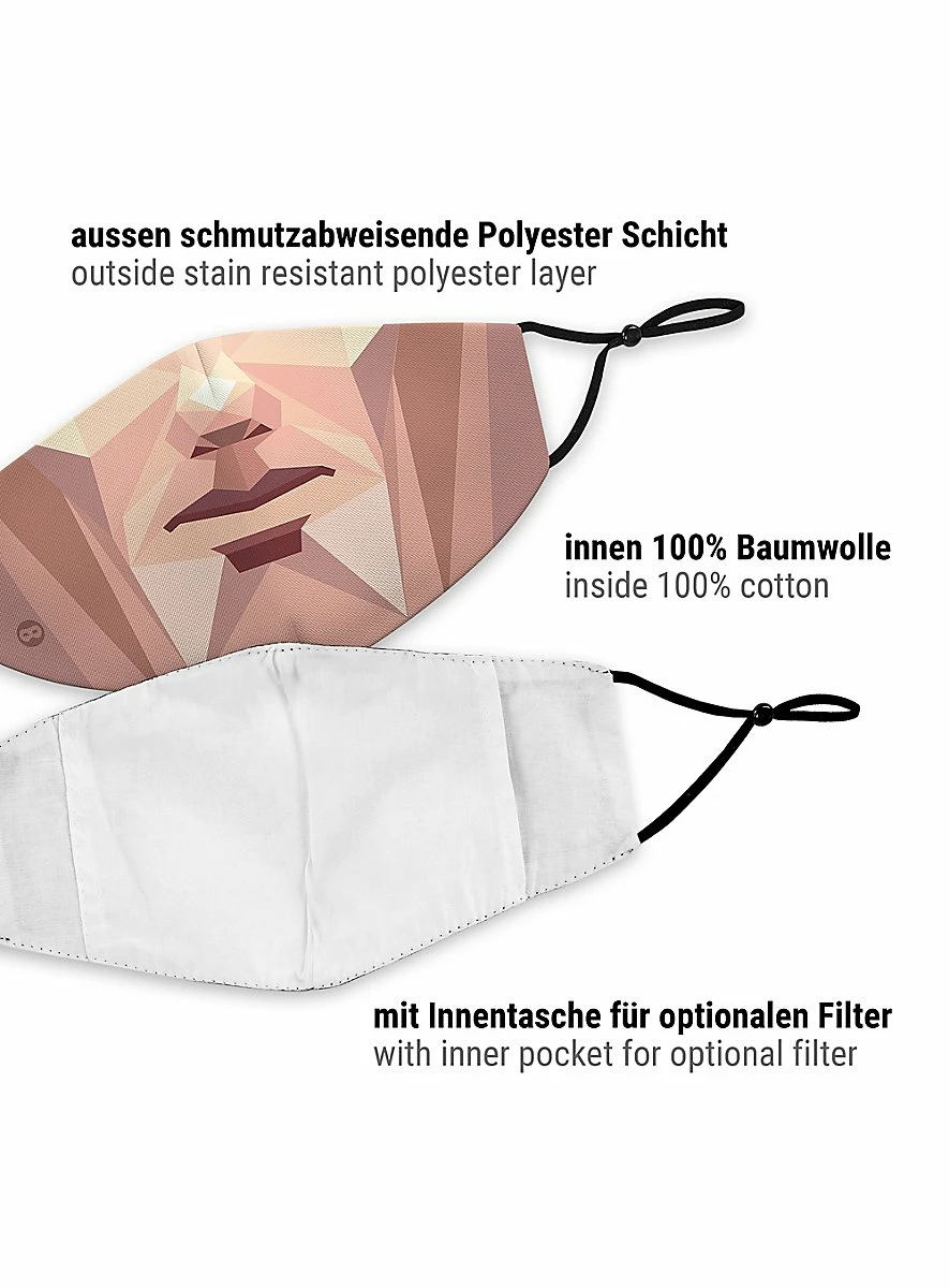 - 3 couches : extérieur polyester, intérieur coton avec poche filtre
