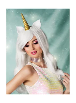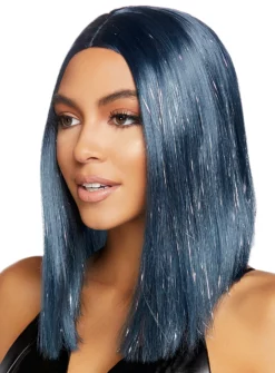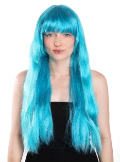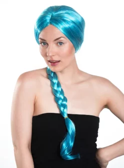 Perruque Cheveux Longs Turquoise Avec Tresse Et Mèches Blanches