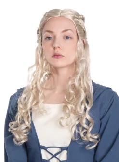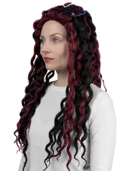 Perruque Cheveux Longs Lilas Avec Tresse Et Mèches Blanches